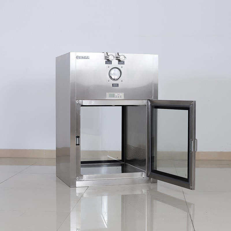 3. பரிமாற்ற சாளரத்தை சுத்தம் செய்யவும்: கதவுகளில் ஒன்றைத் திறந்து, பொருட்களை பரிமாற்ற சாளரத்தில் வைத்து, இரண்டு கதவுகளையும் மூடிவிட்டு, ஃபேன் சுவிட்சை இயக்கவும். மின்விசிறியின் சத்தத்தைக் கேட்ட பிறகு, உள் காற்றைச் சுத்திகரிக்க சுமார் 5-30 நிமிடங்கள் ஆகும்.